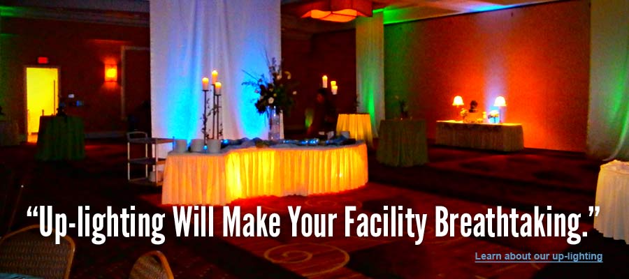 Our top-notch, professional up-lighting scales to acommodate large facilities, intimate rooms and everything in between.